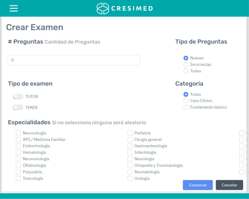 responder preguntas, equivocarte, entender por qué y corregir a tiempo.Por eso Cresimed está basado en la práctica con preguntas reales del Examen de Residencias, explicadas de forma clara, para que estudies con seguridad, sabiendo exactamente dónde estás parado.